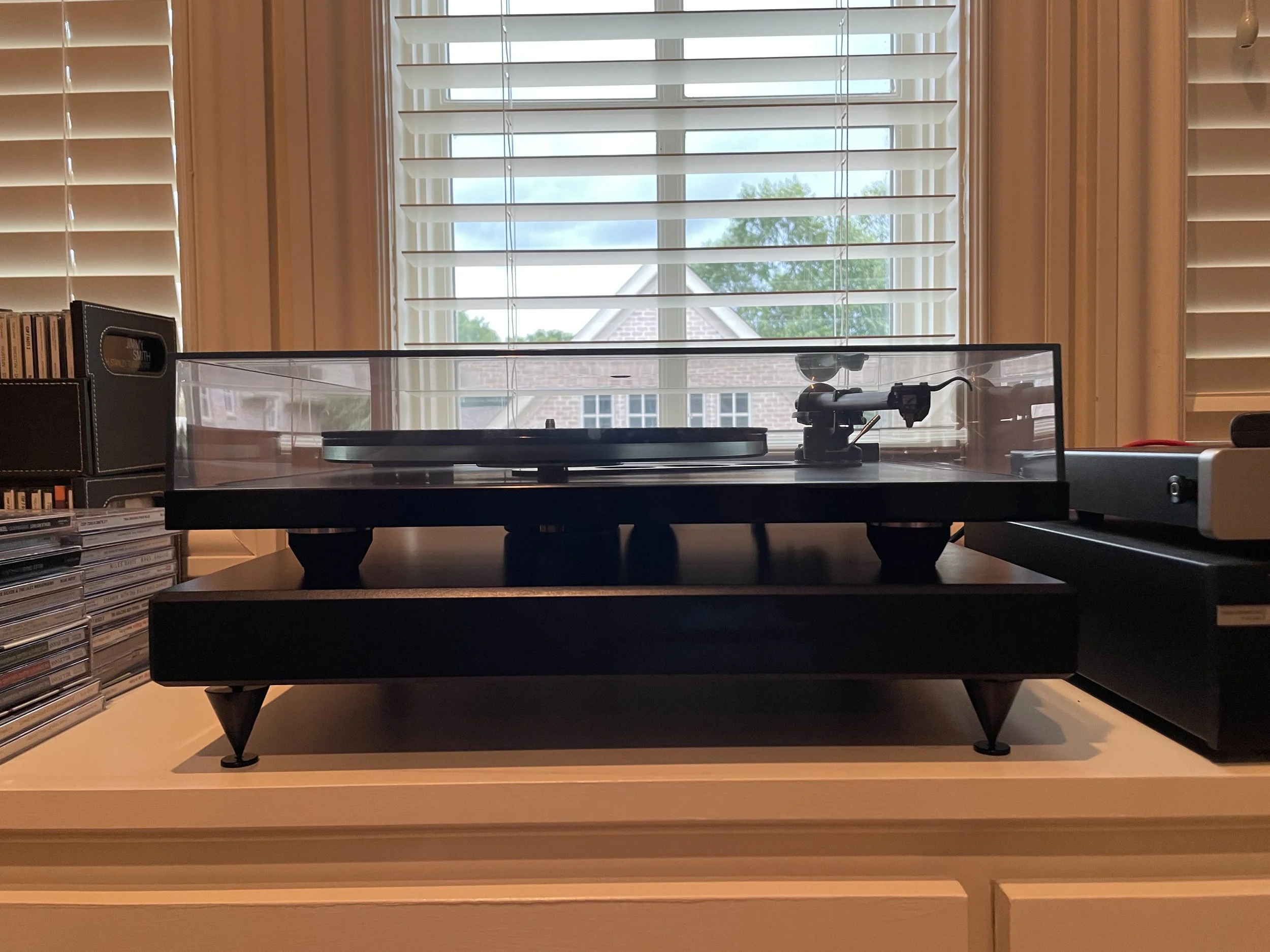 “I wanted to reach out and thank you so much for my new turntable isolation platform. I cannot believe the difference this gorgeous piece of gear has made. I'm hearing the tighter and punchier bass that I expected, but also feel that the midrange has just blossomed with the isolation table in place. Lastly, I'm hearing a lot fewer pops and crackles - it's like having a whole new vinyl collection!! My only problem is that I have to put the turntable on top of the isolation platform, which is a thing of beauty in and of itself!